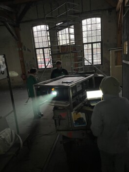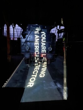 Der dritte Teil der Ausstellung umfasst eine Lichtinszenierung, die direkt auf den Zug und den daneben stehenden Tender gerichtet ist. So wird eine Dynamik in den Raum gebracht, die den Betrachter beeindruckt und zugleich ein gewisses Unbehagen erzeugt. Gezeigt werden Motive der Überwachung und der Teilung.