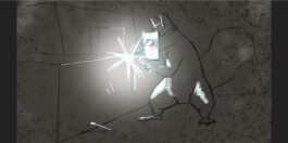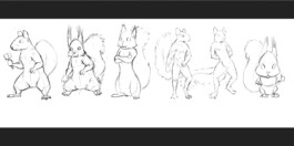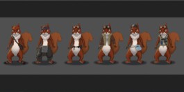 Viel Technik und Feinschliff steckt in Freddy unserem Eichhörnchen. Links das Charakter Rig an dem Freddy wie eine Marionette bewegt werden kann, rechts Freddy ohne Textur.