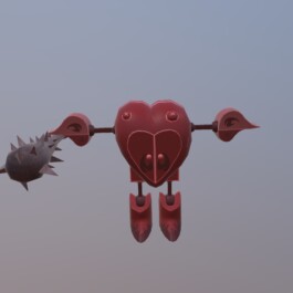 One finished art asset illustrates how the final look and feel of the game combines charm, humor, and clear visual feedback.